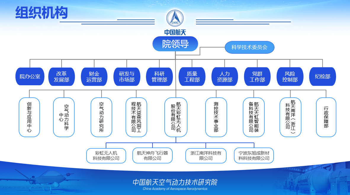 中國航天空氣動力技術(shù)研究院隸屬于中國航天科技集團有限公司(簡稱:航天十一院),坐落于北京云崗,于1956年在我國著名科學家錢學森先生倡導下創(chuàng)建,是我國第一個大型航天空氣動力研究與試驗基地。經(jīng)過60余年的發(fā)展,逐步形成以空氣動力、特種飛行器、航天技術(shù)應用產(chǎn)業(yè)協(xié)同并進的新發(fā)展格局。現(xiàn)有在職員工4000余人,其中專業(yè)技術(shù)人員超60%,集團級以上學術(shù)技術(shù)帶頭人、突出貢獻專家50余名。